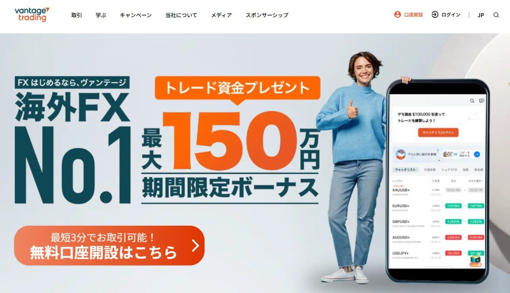 Vantage:口座開設ボーナス15,000円分
